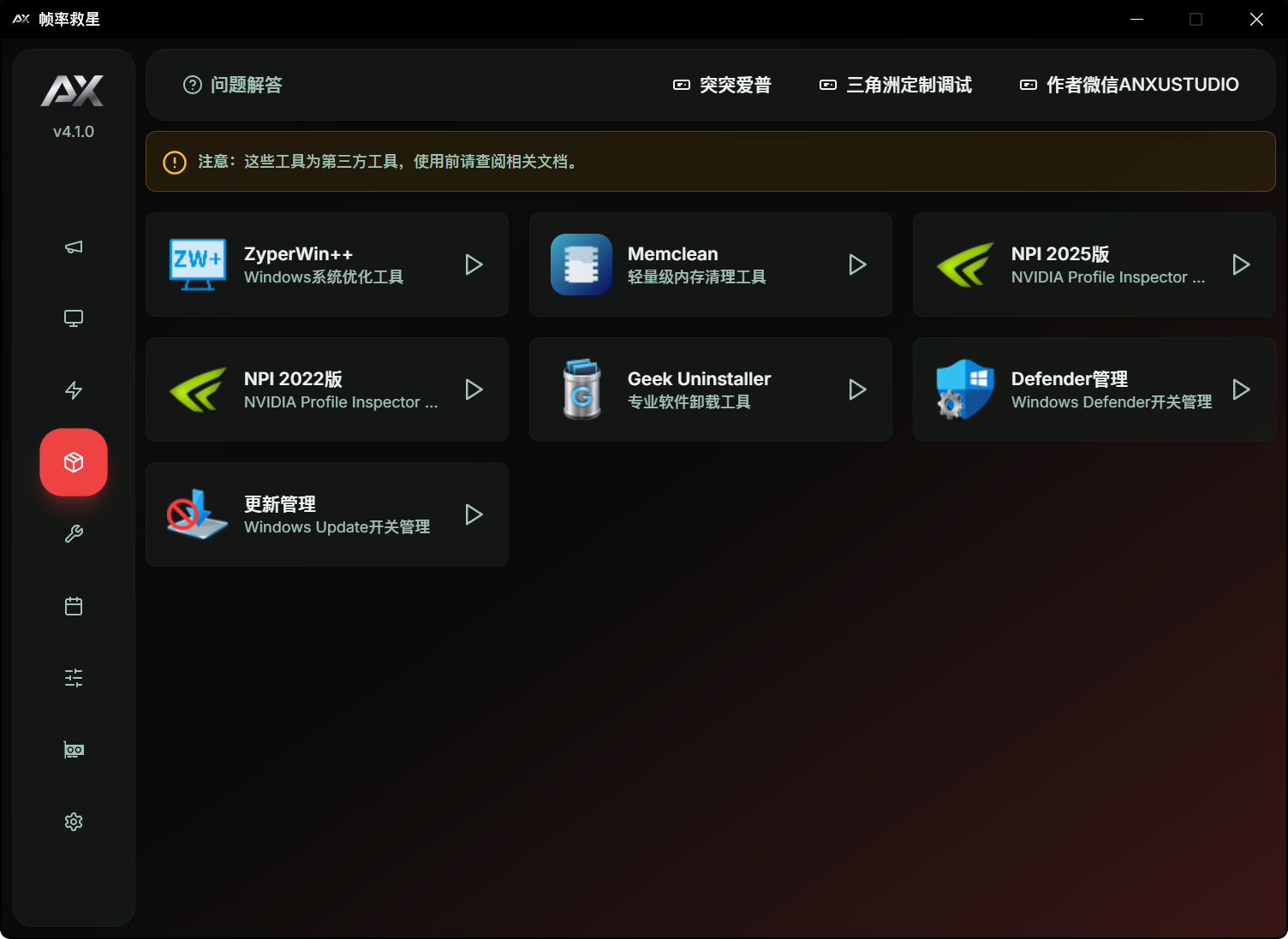多款帧率救星基础版主流优化功能 GPU改写、DLSS锁定、服务优化、优化工具箱、助你快速调试!