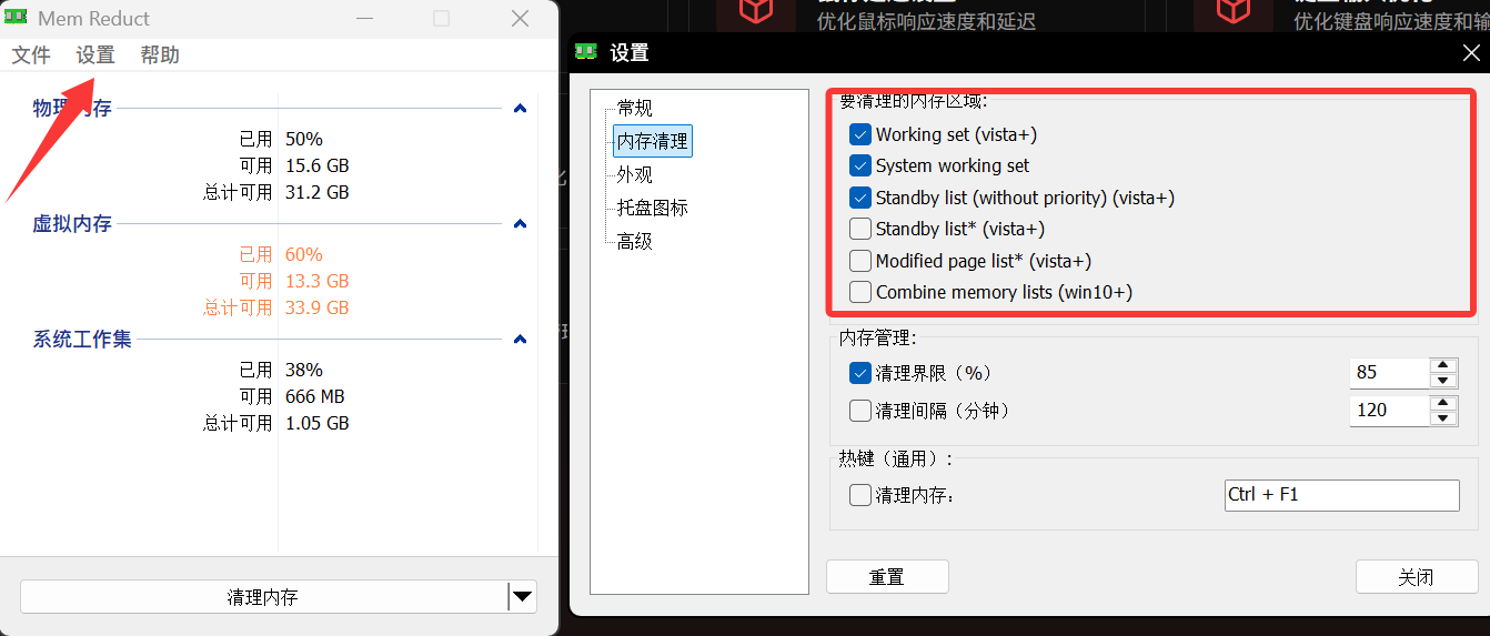 如果你的内存超过24G 强烈不推荐使用此功能 此功能为通过压缩电脑内存 以此来让三角洲达到适配低配机器的标准